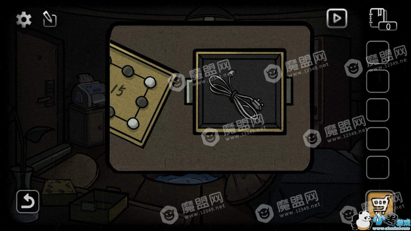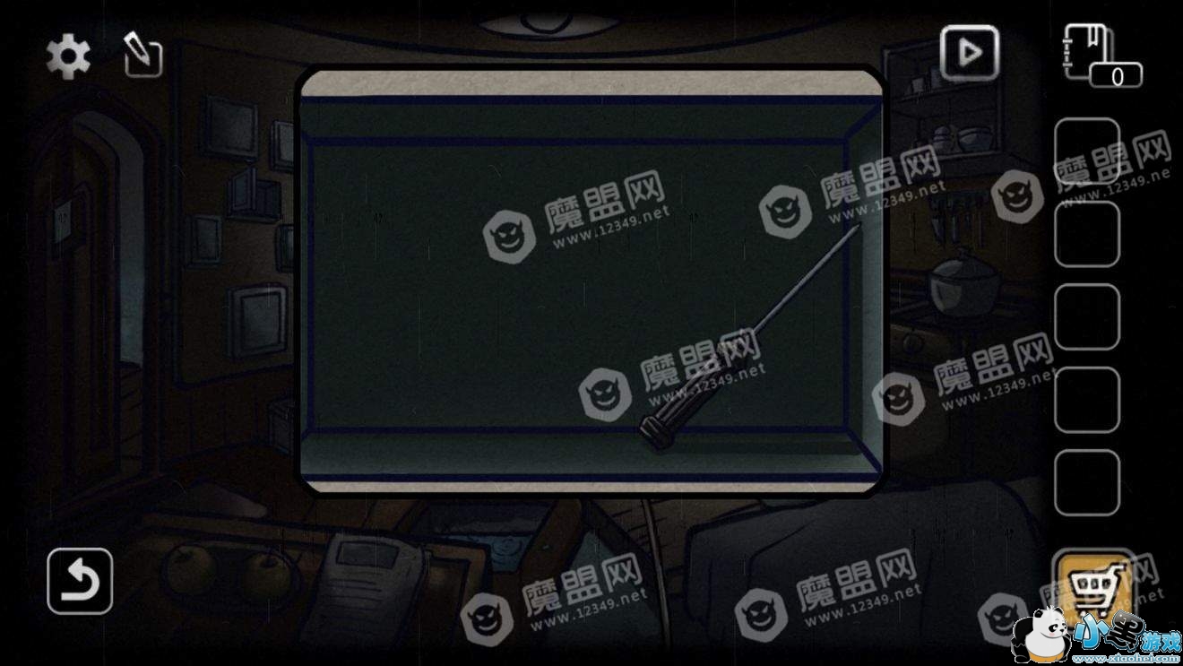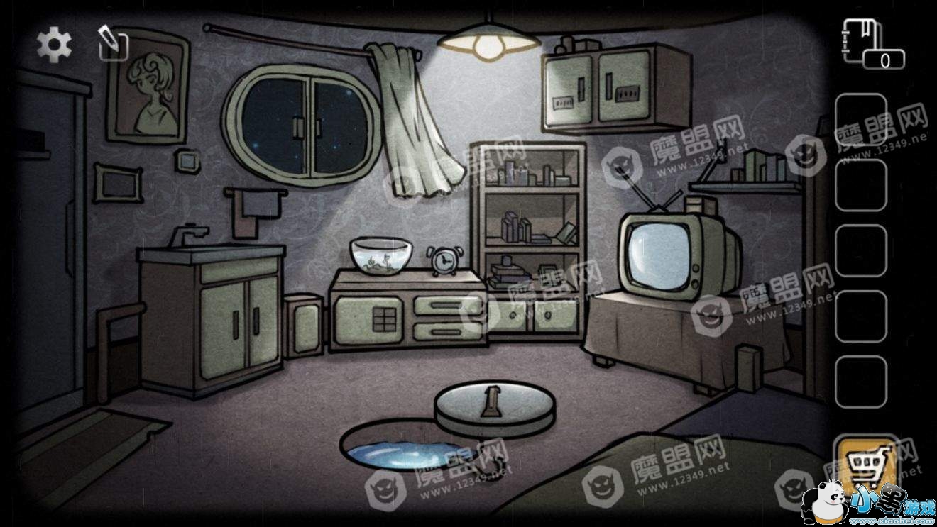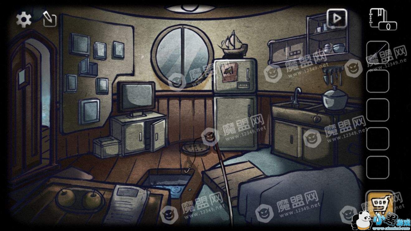 回到房间,选择潜水设备,点击地板中间的洞(之前获得鱼的地方)过关。