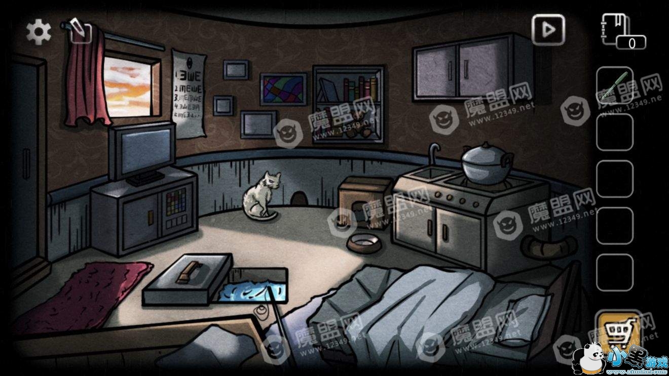 点击锅子获得煮熟的鱼,放入猫碗。露出地板上的红叉。