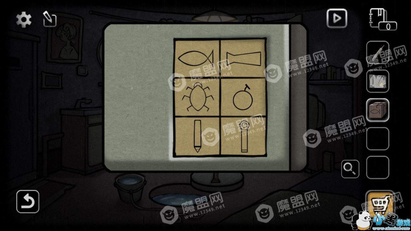 记住图标顺序,回到房间。点击电视左边的照片墙。(树、鸟、柜子、人)
