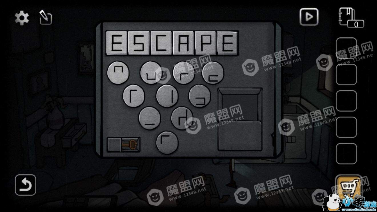 回到刚刚获得放大镜的地方,把白色方块插入后面两块空格,然后拼出escape。获得钥匙,用钥匙开门,通关。