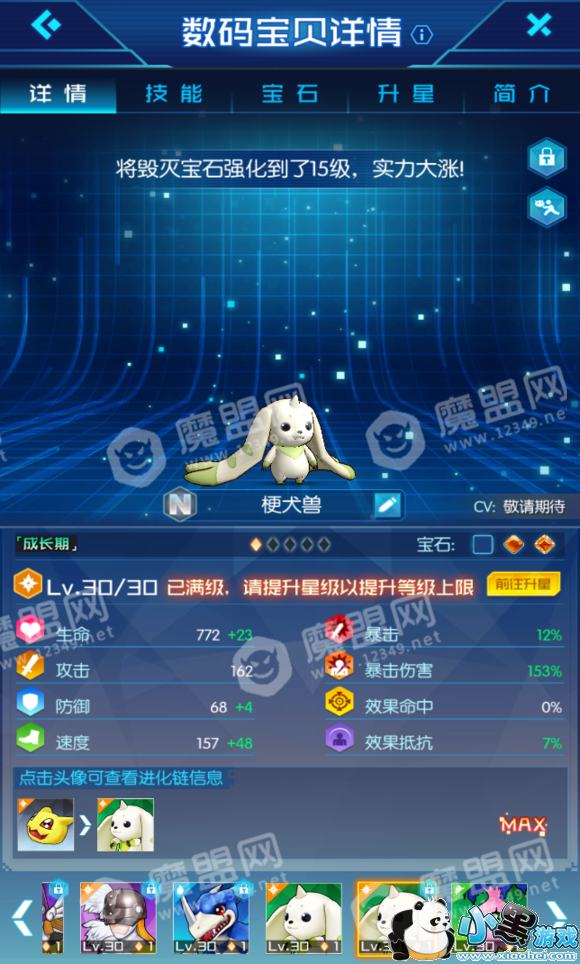 六、暴龙兽(R级 进攻型 开局就送的SSR级宠物 建议尽快进化到战斗暴龙兽 优先培养到4星)
