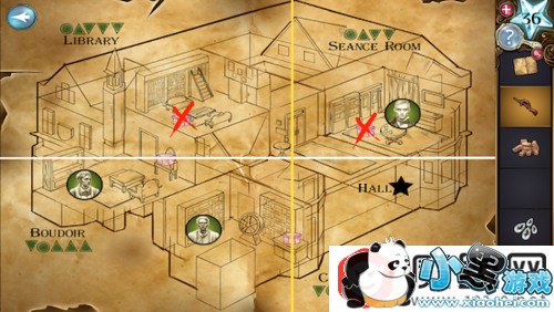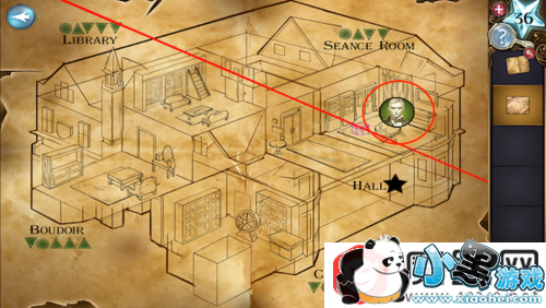查看地图,点击进入书房。先用喷火器射击地上的紫色盒子,然后点击盒子输入密码48620。密码是动物的腿的数量。