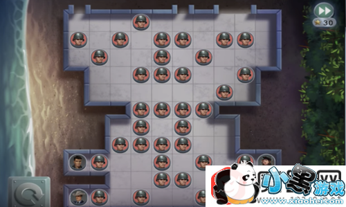 分别移动4个角色,让他们到达上面的门口。角色需要跨过士兵,并且只能到达空白的地方。