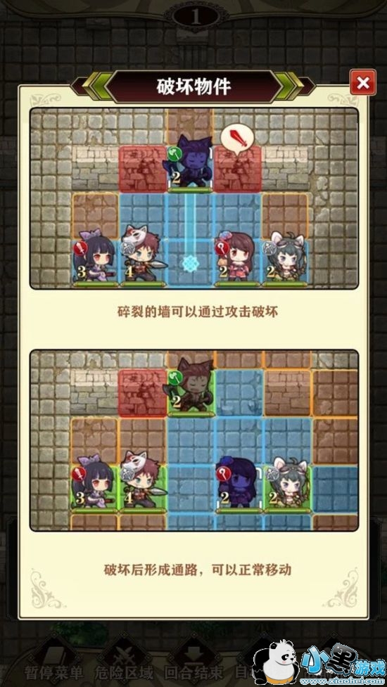 需要注意的是英雄需要消耗掉本回合的攻击机会才能破坏墙体,因此是选择破墙而出主动接敌还是在墙后摆好阵势待机就显得尤为重要。
