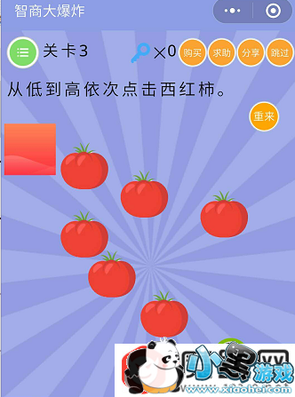 第三关,从低到高依次点击西红柿。