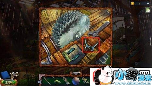 拿到钳子后,回到之前玩齿轮游戏那里,用钳子取下圆锯盘的螺丝,然后拿到圆锯盘,以及拿起妖精的毛。