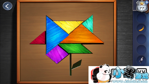 把紫色的板放上去,依次拼好3个图。拼好后如下图。完成后获得钥匙。
