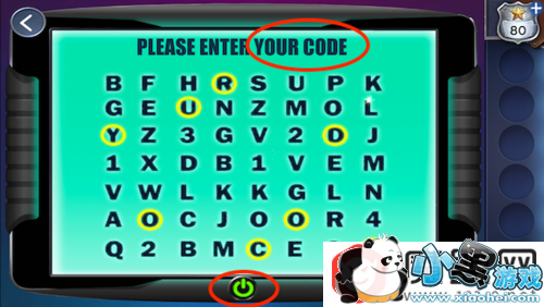 点击车前面的屏幕,打开开关,输入YOUR CODE,每一列只能使用一个字母。