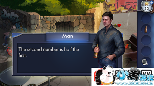 点击左边椅子上躺着的醉汉。这里要对话两次,等第一次对话结束后再次点击醉汉才能获得密码提示。点击大门的锁,输入密码6301。点击进入。