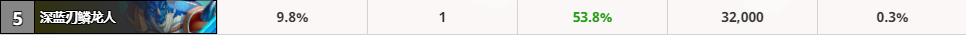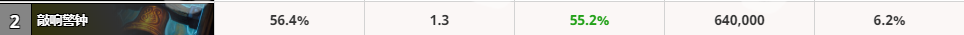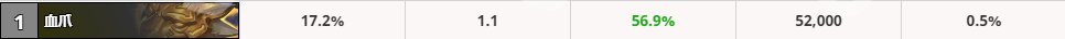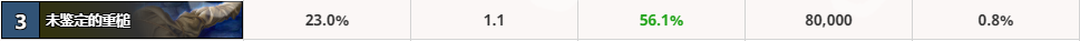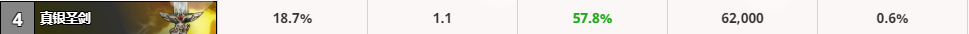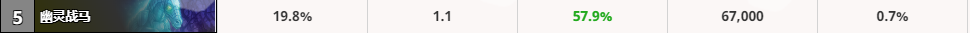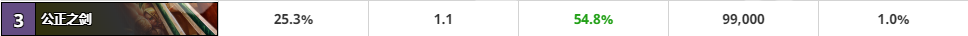 其他几把武器胜率相对低点,如果抓不到武器还是可以凑合着用。整体来说武器的胜率还是挺高,最差的法拉基战斧的胜率也有54.6%,可见一套高胜的骑士两三把武器是必不可少的。