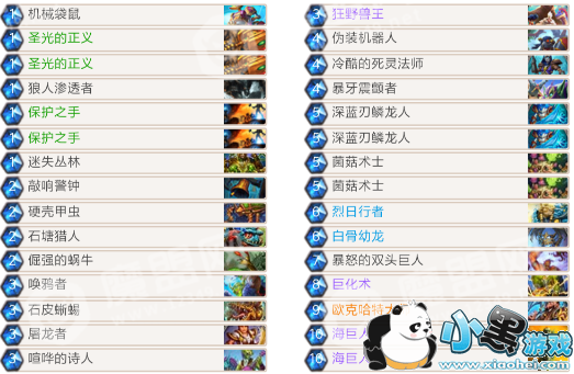 这些1费的法术基本上都是在垃圾堆里选的,不要怕亏牌,有场面的情况下,这些法术牌都能起到很好的效果。2费随从的需求量不是很大可以选两三个,身材最好是2-3,或者是倔强的蜗牛、酸性沼泽软泥怪,3费尽量选一些优质随从(3-4标准身材的随从,海德尼尔冰霜骑士,卑劣的窃蛋者,焦油爬行者、亡语者、屠龙者),当前版本3费对场面的影响很大,上面的卡组3费普遍一般不是不选是因为选不到。
