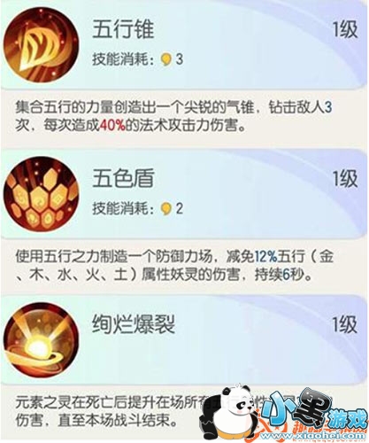 五个妖灵合成的妖灵名字叫做元素之灵,实力还算可以,下面是技能: