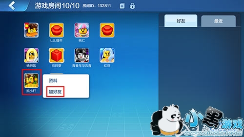 然后点击之后,就可以看到目前房间所有的玩家名字,点击想要建立好友关系的玩家,就可以弹出来加好友的选项,可以发送好友要求。