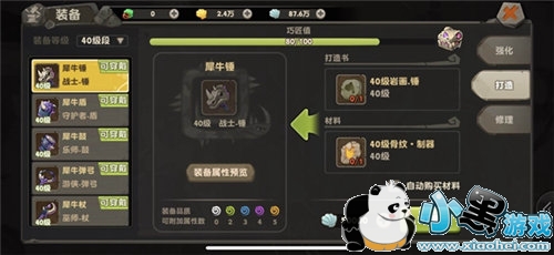 装备系统又细分为强化、镶嵌、打造、熔炼、修理和融合,提升战力主要在于装备的强化和打造上,强化装备等级可以增加对应的属性,强化有一定的成功率,等级越高,强化成功率越低。如果有装备打造书和材料,就可以使用装备打造,自己打造出不同装备品质、基本属性和附加属性的装备,通常打造出的装备在前期属性都不会太差,实用性很高。