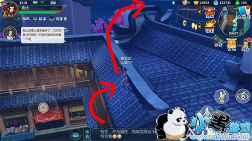 然后直接在这个位置上继续跳,最好是走一段时间,然后在跳,可以实现二段跳,然后直接跳到房顶上面。