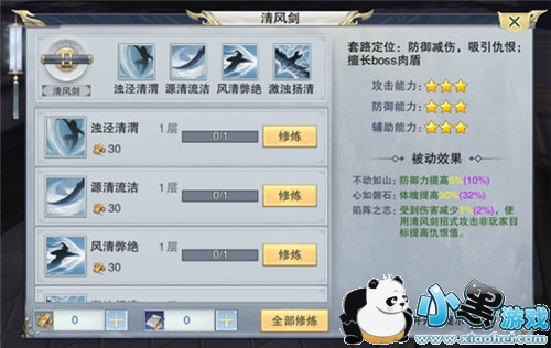2. 武学进阶采用养成系统,玩家可通过消耗相对应的武学残卷来进阶(武学等阶越高消耗数量越多)。