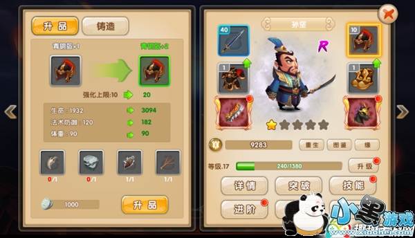 2.装备升级:4个部分可以分别升级,升级后提升基础属性。