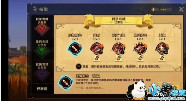 学会这套刺杀专精的技能,能够更好地利用刺客技能冷却时间短的优势,突进敌人内部,在战斗中快速取胜。