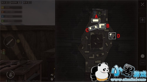 从初始点往赛场上前进,建议从左边出发,躲在建筑A后面可以获得视野,此处能够保证自己的左右两侧是安全的。从左边进攻,可以利用木棚和建筑B,直接打到对方的初始点。右边的方框里有一个防守平台,蹲在上面可以更方便的观察对手。同时能通过木材堆,通过缝隙扩宽视野,同时和队友配合,将对方包抄。如果在进攻的过程中,健康值受损,建议躲到建筑C,此处能够躲避对手的后方攻击,隐藏的空间让对手发现不了自己,有利于健康值的回复。建议躲在建筑D里观察情况,等待敌方进攻再伺机淘汰对手。