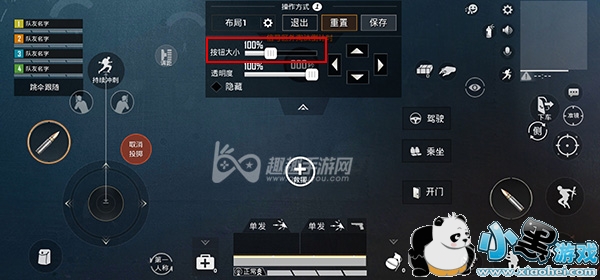 之后就可以选择你想要放大或者是缩小的按钮,然后有个按键大小,玩家可以往左边拖动就是缩小,往右边拖动就是放大,然后就可以让你的按钮大小进行更高。