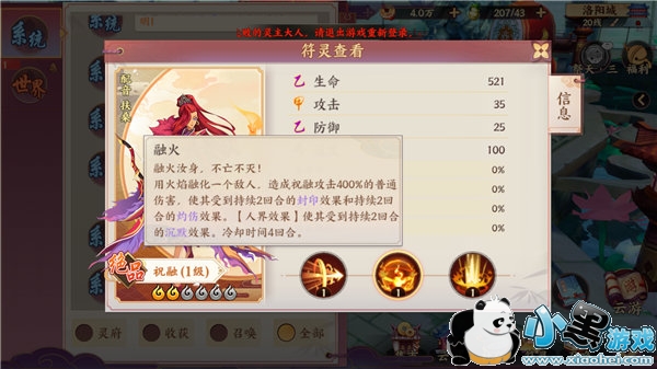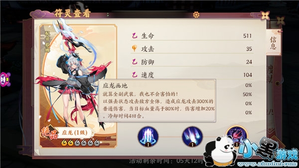 这是我们在完成开服七天活动后会获得的绝品符灵,别看入手简单,但是伤害加成依然在前列。并且作文衡属性妖灵,输出受到强击加成的同时,还不会受到影响。AOE在满足条件的情况下可以打出410%的伤害。