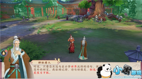 我们找到老人点击对话,他会和我们说一段话,其中还会标注出两个重点信息“世界”和“相见心相许,新夜月下狐。”