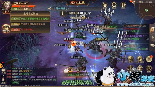 《精灵盛典》采用的红名系统跟《奇迹MU》类似,身处像是魔化之地这样的野外非安全区时,点击左上角头像下面的和平按钮,就能进行战斗模式切换。《精灵盛典》共有三种模式,分别是只能反击恶意攻击自己的玩家的和平模式,不能攻击同队和同盟玩家的强制模式,以及可攻击所有人的全(发)体(疯)模式。