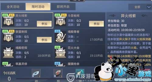 所在家族加入联盟后,可以在“活动”页面中“限时活动”接取任务。我们点击参加联盟活动时会自动选路到自己所在联盟“萧炎”处接取任务,任务完成后在“药尘”处交任务并获得奖励,活动时间:10:00-23:59。