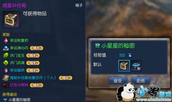 小星星的秘密任务奖励是100经验值,10 个“小星星箱”和1个“微星补给箱”。