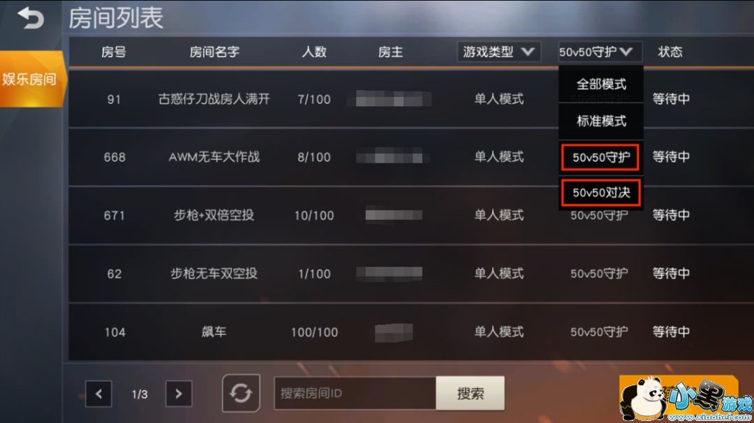 快速选择房间模式