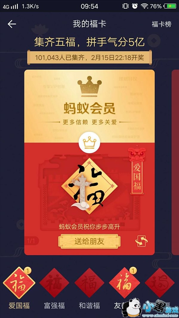 支付宝的钻石会员将会获得3张专属“万能福”卡,作用也和去年一样,“万能福”卡可以转换为任何福卡,也可以将“万能福”卡送给好友。