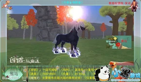 【黑马】 :一种比较稀有特效坐骑,比较难肝!金谷草原上有分布。