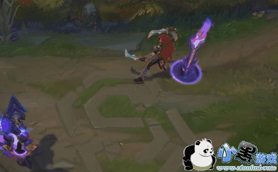 W技能的特效很不错,紫色的波纹扩散开来,身上的护盾也是紫色的。