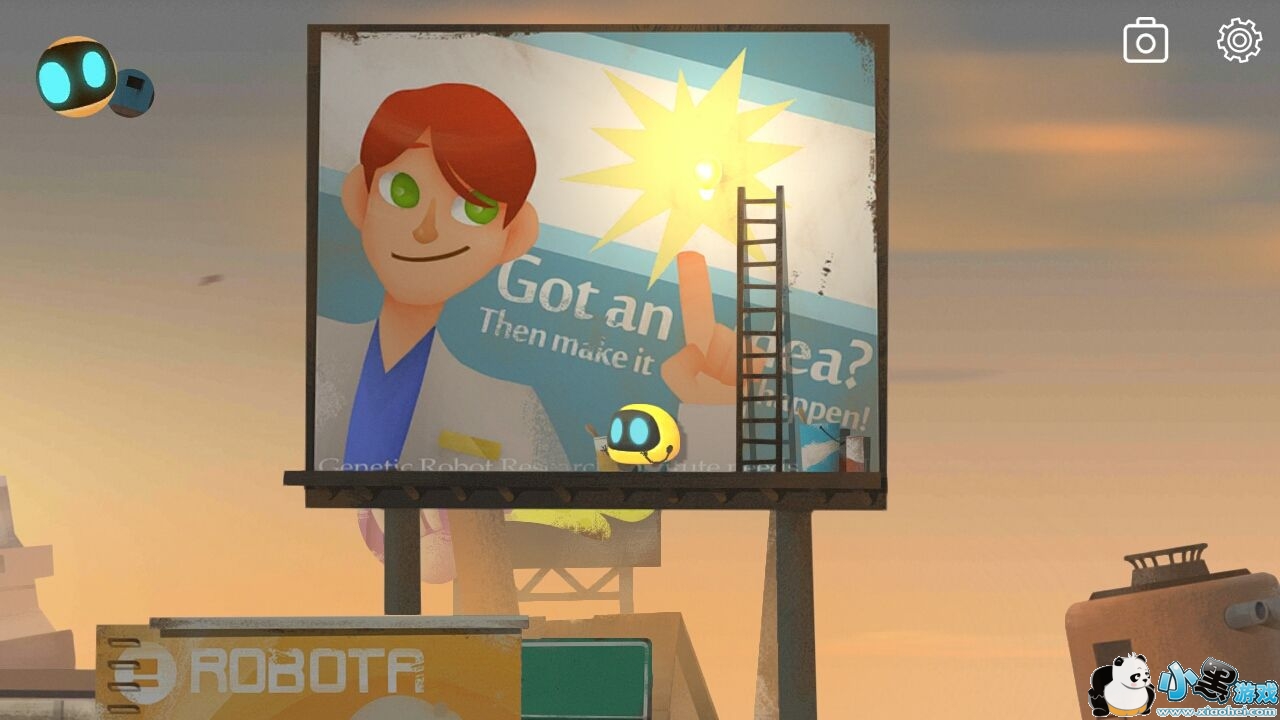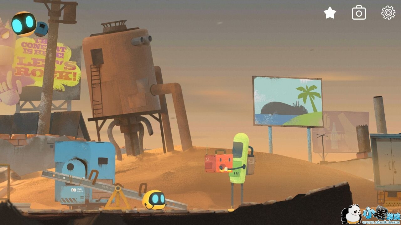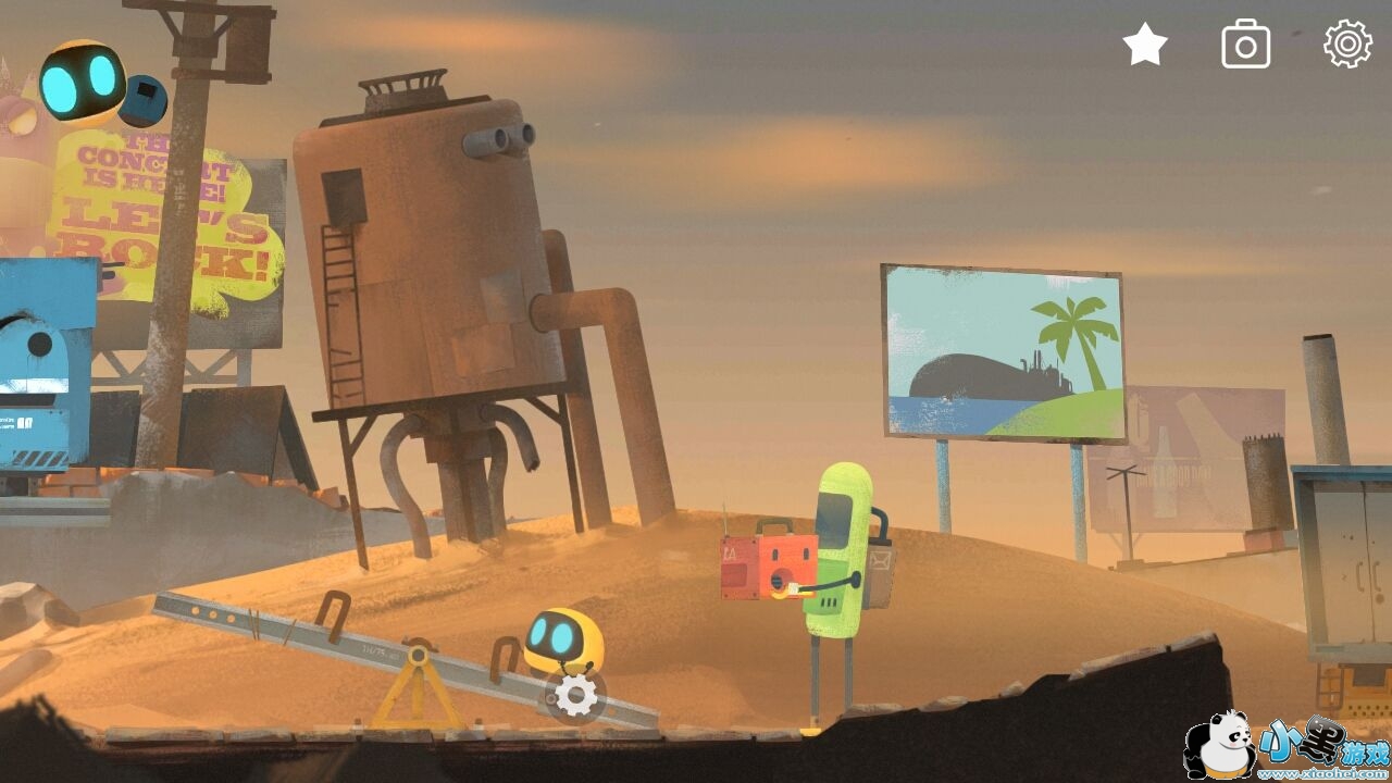 到了新场景继续往右,遇到绿色机器人得知机器人想吃易拉罐