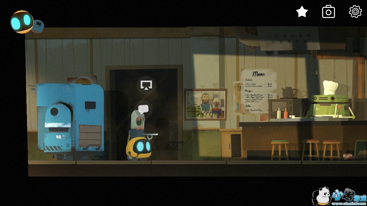 出门后右拐,绿色机器人会跟着艾比,进船舱