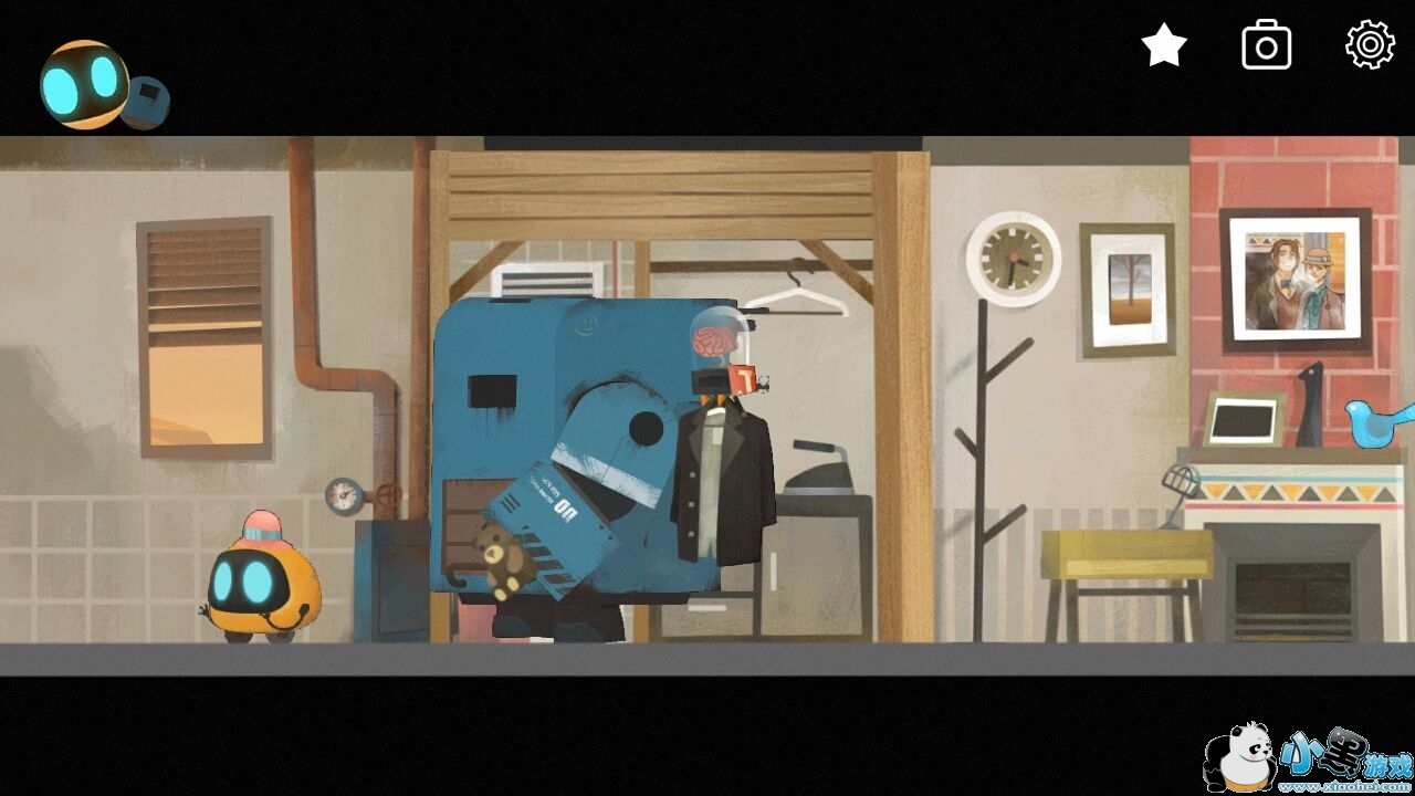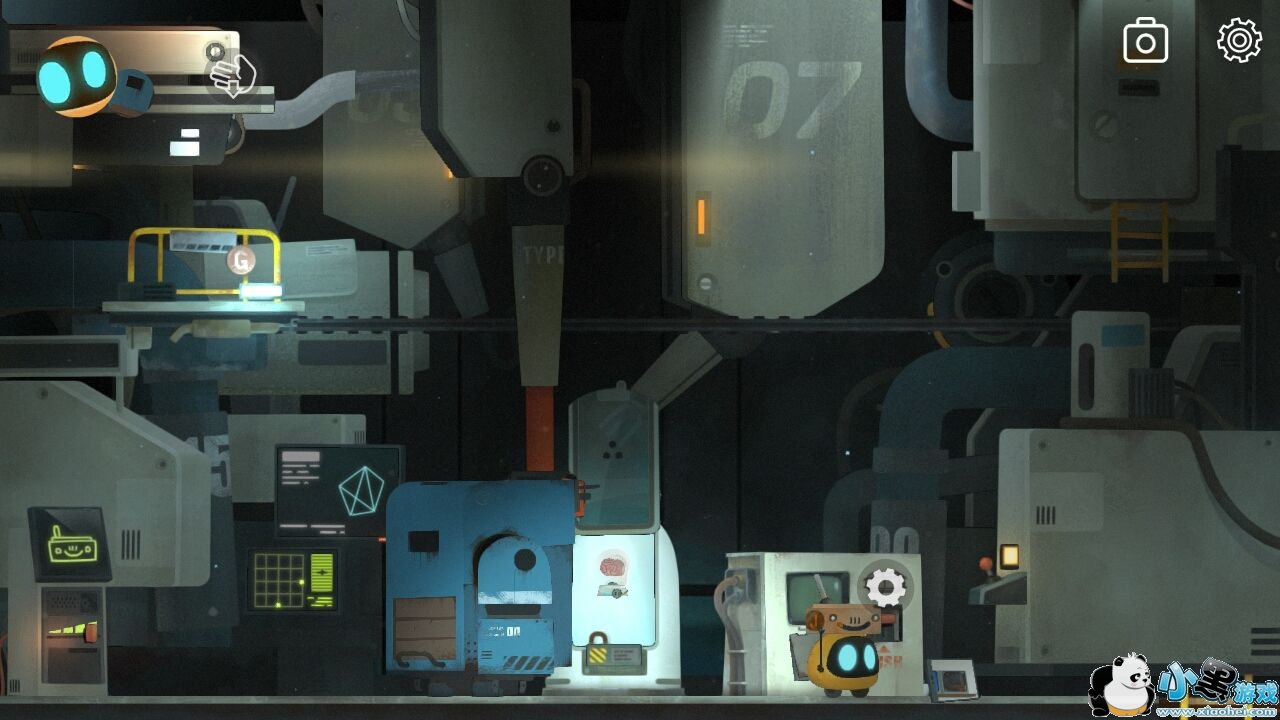 新场景,先找到大脑的两只脚给他安上,再找发条再安上,然后往右(话说我费劲千辛万苦救出来的小方块咧?)