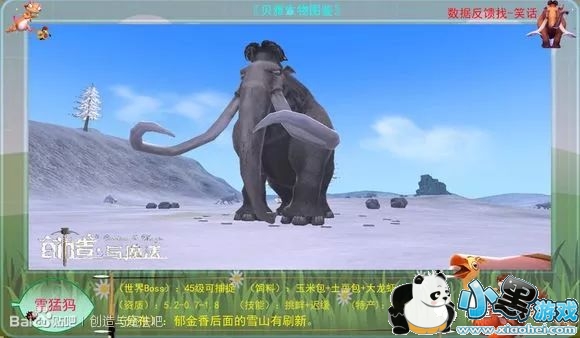 【世界Boss雪猛犸】:45级拥有嘲讽技能的前排肉盾!技能迟缓。大龙虾+玉米饲喂料+土豆饲喂料=雪猛犸饲料(12包饲料)