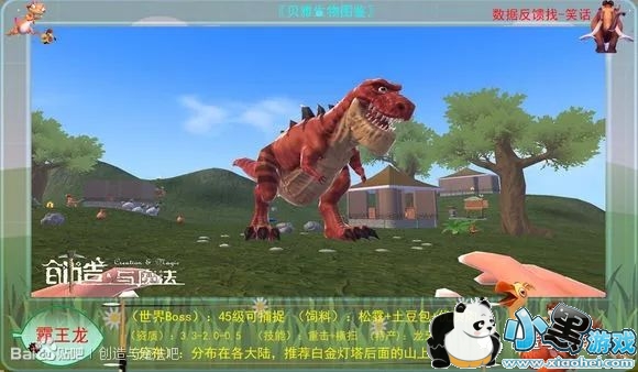 【世界Boss霸王龙】:45级拥有群体攻击技能的宠物。松露+土豆饲喂料+优质饲喂肉块=霸王龙饲料(12包饲料)