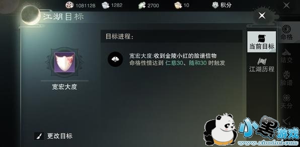 宽宏大度脸谱:命格性情达到仁慈30、随和30时触发