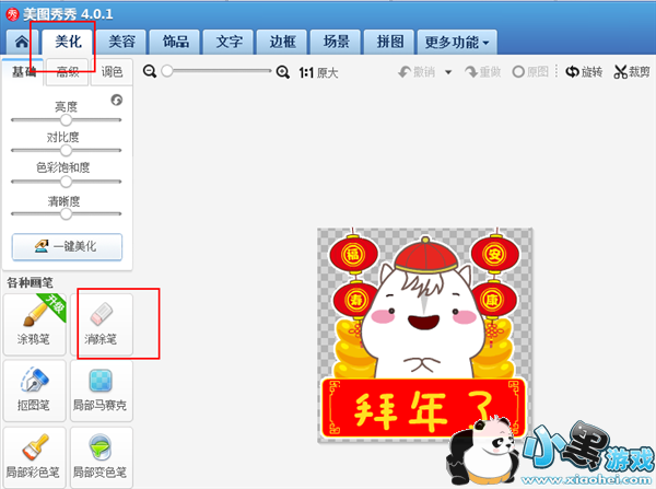 5、如果原来的横幅上面有字,可以使用美化中的消除笔进行消除!