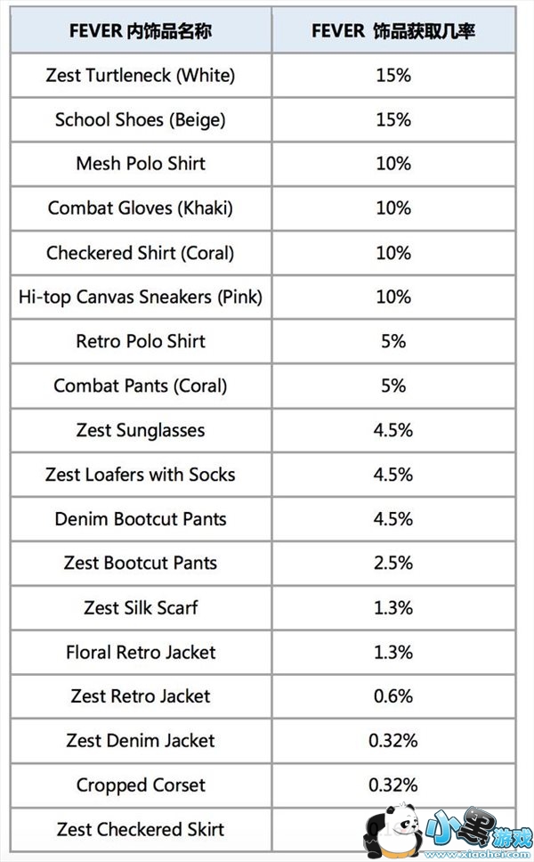 新箱子物品中奖概率如下: