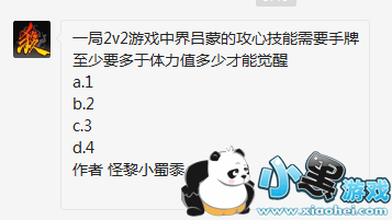 一局2v2游戏中界吕蒙的攻心技能需要手牌至少要多于体力值多少才能觉醒?三国杀移动版2月22日每日一题来了,今日的题目考验大家的是对吕蒙技能的了解,那么你知道这道题目的答案吗?不知道的话就让我爱秘籍网小编来告诉大家吧。