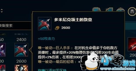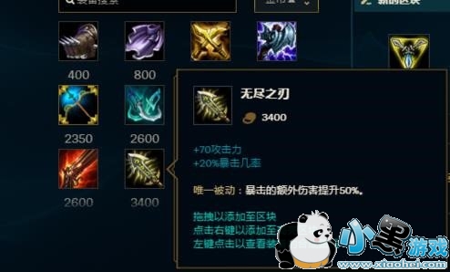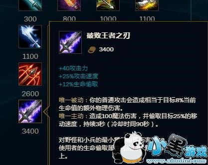 接下来推荐加攻击力的装备,可以强化Q技能伤害之后还能升级Q技能
