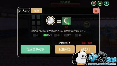 一件需要20蚕+40纤维+40兽皮+7~8树叶