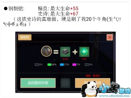15级解锁,制作时加入牛角之后,93%精良,7%史诗。