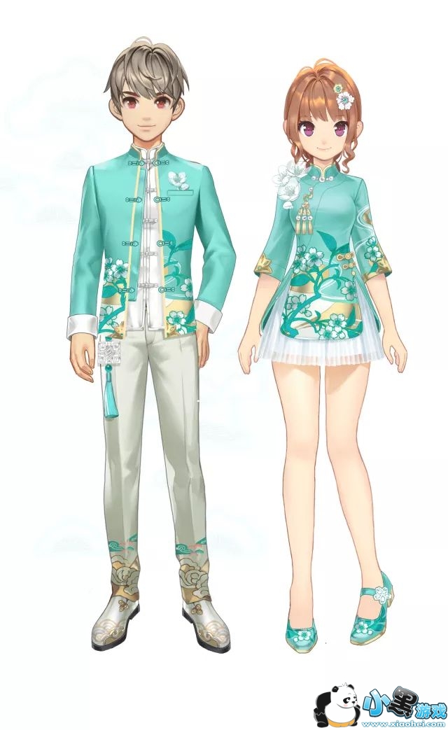 少年梳起亮丽的银发,穿着丝绸编织的唐装,谦谦君子,温润如玉。少女梳着齐刘海乖巧可爱,身着如翡翠般绚丽的汉式服装,脚步轻盈,气质满满。