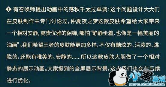 貂蝉传说级皮肤仲夏夜之梦的优化反馈回答,有网友称这款皮肤出场画面只有荡秋千太单调。