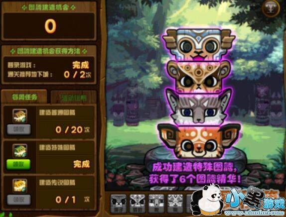 建造出特殊图腾后可以领取50个图腾精华与10个明亮的图腾气息传说没有顺序,只要用了中间的随机,随机结果是鹰头就行,纯粹看脸的玩意儿特殊图腾每周点出一次即可。