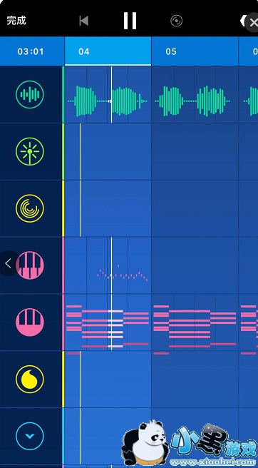 APP中的乐曲有不同的音轨,每个音轨又被切割为多个“音段”,以网格形式呈现。在每一个网格中,拖动手指即可添加音符,同时用上三维触控(3D Touch)则可绘制高声音符。