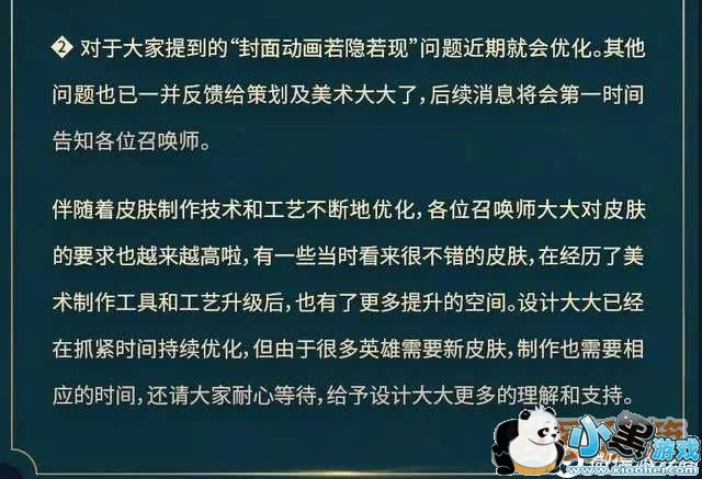 还有对封面的动画效果也会进行优化,而未来会有更多皮肤进行优化升级,希望能不止优化传说级的,那些勇者的或者白板的也都喜欢能做一些优化特别是像孙尚香的水果甜心那么贵特效那么一般。